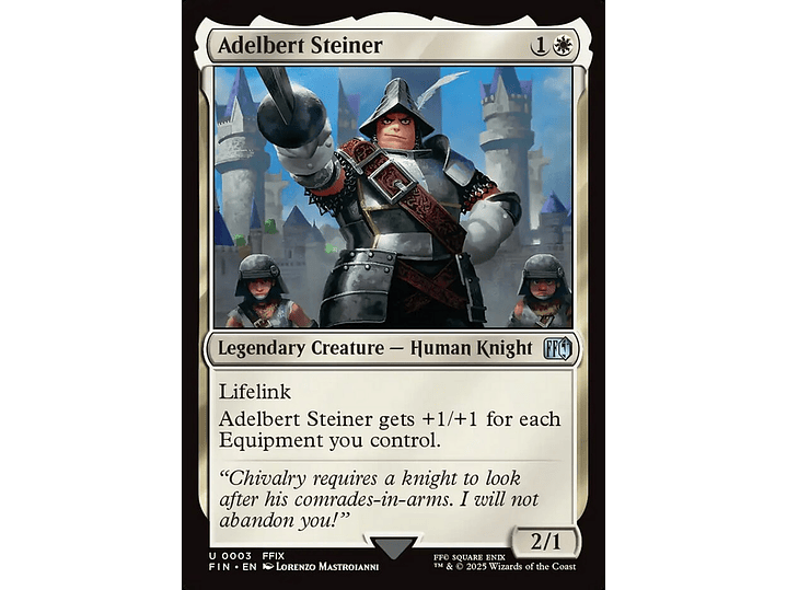 Adelbert Steiner gets +1/+1 for each Equipment you control.