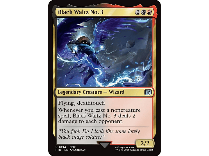 Whenever you cast a noncreature spell, Black Waltz No. 3 deals 2 damage to each opponent.