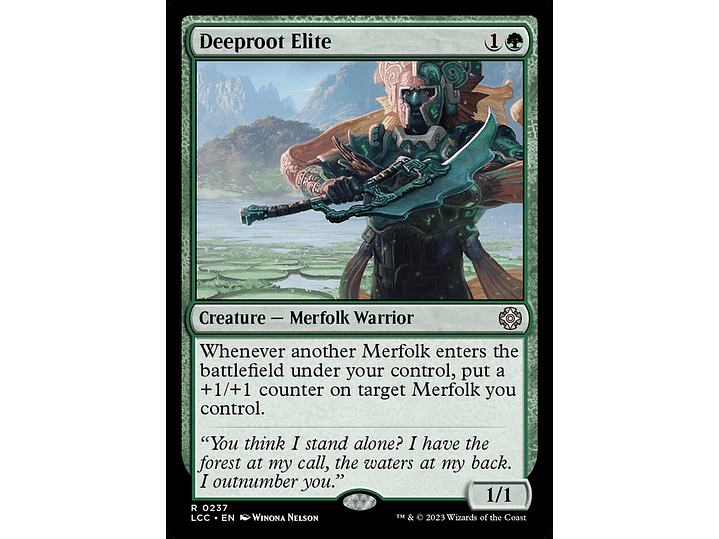 Whenever another Merfolk you control enters, put a +1/+1 counter on target Merfolk you control.