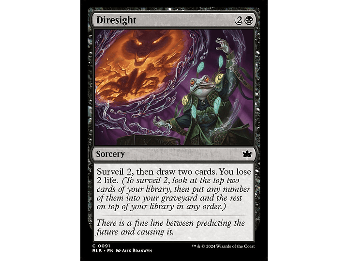 Surveil 2, then draw two cards. You lose 2 life. (To surveil 2, look at the top two cards of your library, then put any number of them into your graveyard and the rest on top of your library in any order.)