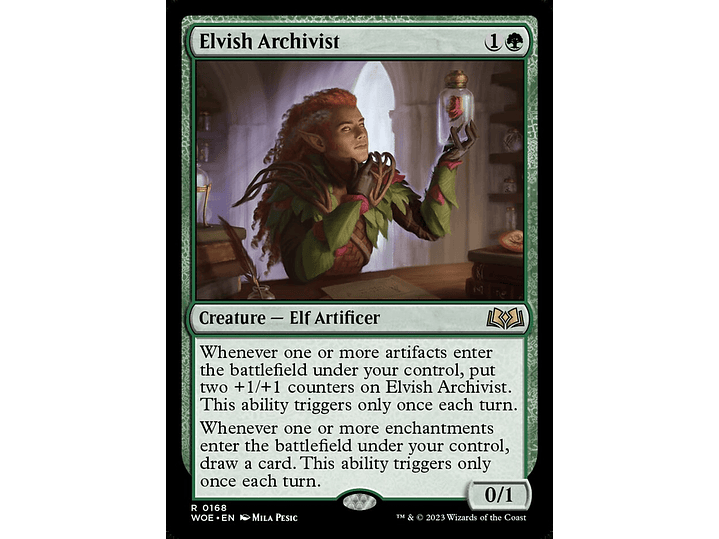 Whenever one or more artifacts you control enter, put two +1/+1 counters on this creature. This ability triggers only once each turn.