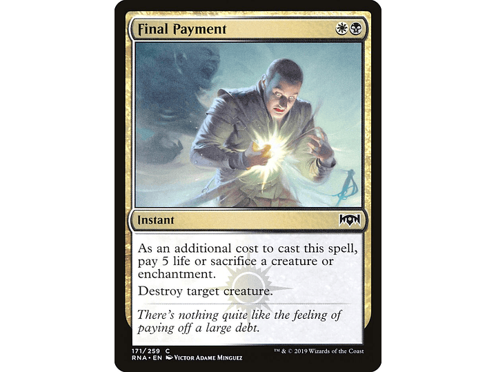 As an additional cost to cast this spell, pay 5 life or sacrifice a creature or enchantment.
