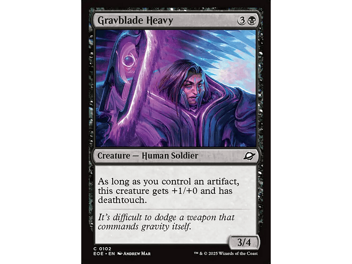 As long as you control an artifact, this creature gets +1/+0 and has deathtouch.