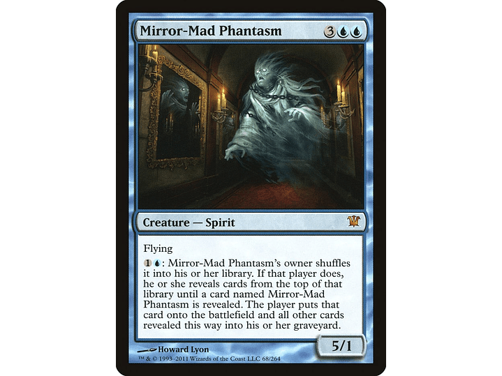 {1}{U}: This creature's owner shuffles it into their library. If that player does, they reveal cards from the top of that library until a card named Mirror-Mad Phantasm is revealed. The player puts that card onto the battlefield and all other cards revealed this way into their graveyard.