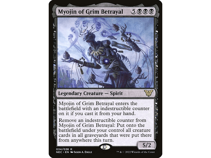 Myojin of Grim Betrayal enters with an indestructible counter on it if you cast it from your hand.