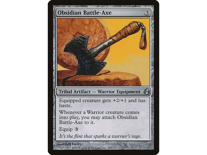 Whenever a Warrior creature enters, you may attach this Equipment to it.