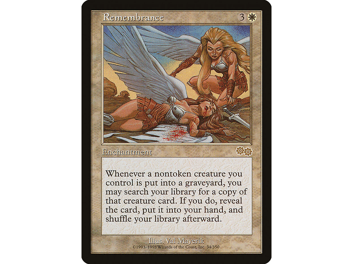 Whenever a nontoken creature you control dies, you may search your library for a card with the same name as that creature, reveal it, put it into your hand, then shuffle.