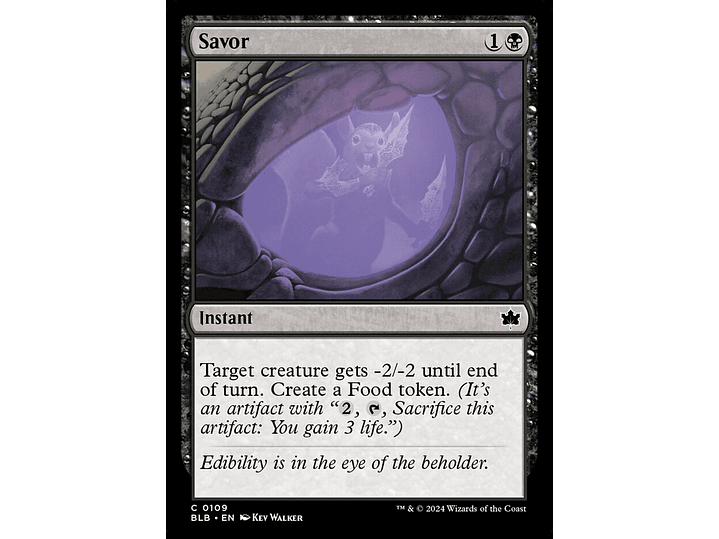 Target creature gets -2/-2 until end of turn. Create a Food token. (It's an artifact with "{2}, {T}, Sacrifice this token: You gain 3 life.")